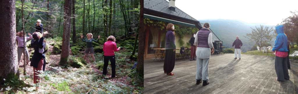 – Les pratiques debout (Chi Gong), avec des mouvements lents et très simples qui permettent de sentir l’Energie.